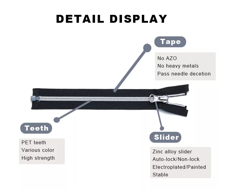TRC পরিবেশ বান্ধব পুনর্ব্যবহৃত নাইলন জিপার স্থায়িত্ব এবং উচ্চতর কর্মক্ষমতা মধ্যে একটি ভারসাম্য অর্জন করার জন্য ডিজাইন করা হয়েছে. এই পণ্যটি সম্পূর্ণরূপে পুনর্ব্যবহৃত নাইলন সুতা এবং পলিয়েস্টার ওয়েবিং থেকে তৈরি করা হয়েছে, যা প্লাস্টিক বর্জ্য কমাতে এবং জিপারের শক্তি, নমনীয়তা এবং মসৃণতা বিসর্জন না করে সম্পদ সংরক্ষণ করতে সাহায্য করে।