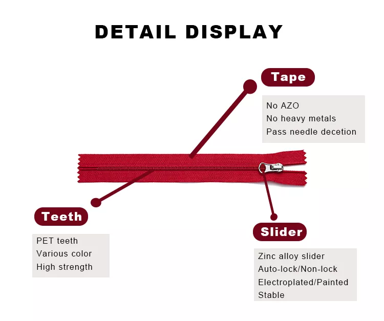 TRC, একটি বিশেষ চীনা জিপার প্রস্তুতকারক হিসাবে, একটি ব্যাপক উৎপাদন ব্যবস্থা এবং কঠোর মান নিয়ন্ত্রণের মান রয়েছে। আমাদের সমস্ত স্ট্যান্ডার্ড নাইলন জিপারগুলি ঘর্ষণ প্রতিরোধের, প্রসার্য শক্তি এবং কালারফাস্টনেস পরীক্ষার মধ্য দিয়ে যায় যাতে উচ্চ-ফ্রিকোয়েন্সি ব্যবহারের অধীনেও অসামান্য কার্যক্ষমতা নিশ্চিত করা যায়।