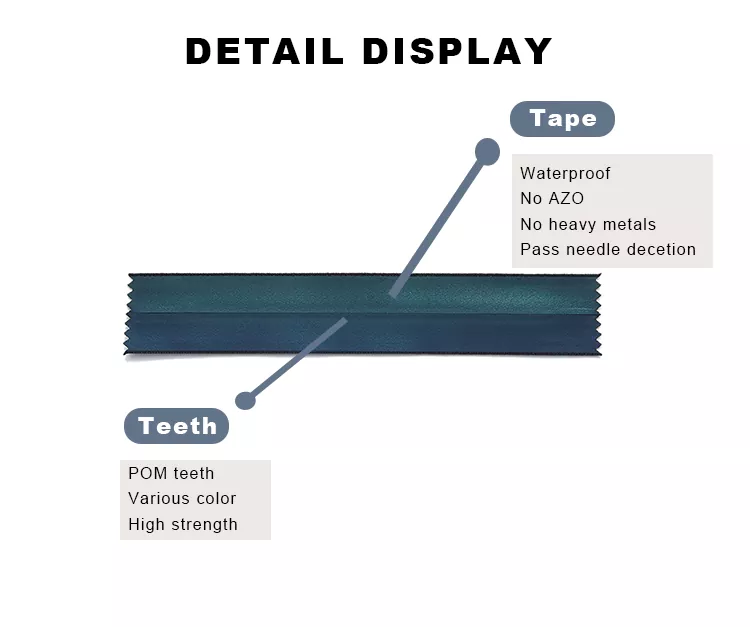 চীনে জিপারগুলির একটি বিশ্বস্ত প্রস্তুতকারক হিসাবে, TRC উপাদান নির্বাচন থেকে জলরোধী ঝিল্লি প্রয়োগ পর্যন্ত সমগ্র উত্পাদন প্রক্রিয়া জুড়ে কঠোর মান নিয়ন্ত্রণ বজায় রাখে। এছাড়াও, আমাদের OEM/ODM কাস্টমাইজেশন বিকল্পগুলি আপনাকে রঙ, আবরণের ধরন, স্লাইডার শৈলী এবং জিপারের মাত্রা নির্দিষ্ট করতে দেয়, যা বিশ্বমানের মান এবং ডিজাইনের মান পূরণ করে এমন উপযুক্ত সমাধানগুলি নিশ্চিত করতে পারে। ফলস্বরূপ, টিআরসি জল প্রতিরোধী প্লাস্টিকের জিপারগুলি সুরক্ষা এবং বহুমুখিতা চাওয়া ব্যবহারকারীদের জন্য একটি নির্ভরযোগ্য পছন্দ উপস্থাপন করে।